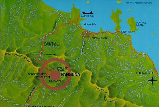 Bougainville Island is 30 miles wide and 130 miles long with its dominant feature a range of mountains which rises to 8,000 ft. and runs the length of the island. This mountainous land is jungle covered and swampy in low lying coastal areas. The terrain formation for the most part consists of volcanic ash and fractured and weathered rock. The weather is tropical with coastal rainfall ranging from 100 in to 150 in. per year while the mountain areas receive from 150 in. to 300 in. per year. |