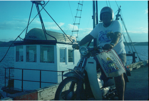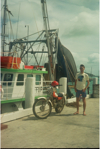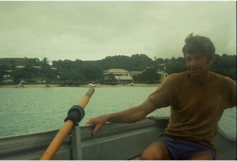 David in his dinghy in front of TI