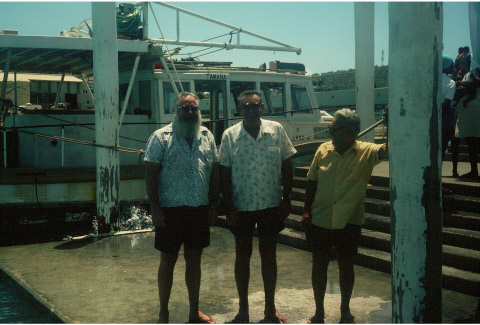 Peter in TI T-shirt on jetty